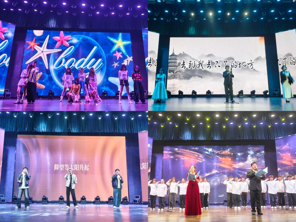 开场舞《go big or go home》在热烈音乐与绚丽灯光中起舞,点燃全场激情,展现新生蓬勃朝气;歌曲《我是如此相信》《男孩》《妥协》用歌声演绎成长心路,展现出当代青年既要有坚定信念,也要学会反思与包容;朗诵《山河作答》深情礼赞祖国山河,立下青年与时代同行的誓言,表达了对祖国大好河山的热爱;二重唱《我的深情为你守候》旋律悠扬、配合默契,传递对友情与未来的温柔祝福;小品《甄嬛传之外卖风波》古装与现代融合的爆笑故事,在欢乐中传递温暖与团队默契;舞蹈《Body》节奏明快、动作利落,展现出青春力量与自信魅力。相声《我很内向》幽默调侃内向日常,鼓励勇敢表达与融入集体;小品《开心被套》舞蹈与表演结合,创意十足,体现大学生活力与想象力;弹唱《一程山路》温柔旋律与真挚歌声,为新生送上最真诚的祝福;葫芦丝伴唱《青花瓷》民族乐器与流行音乐交融,勾勒出古色古香的东方意境。